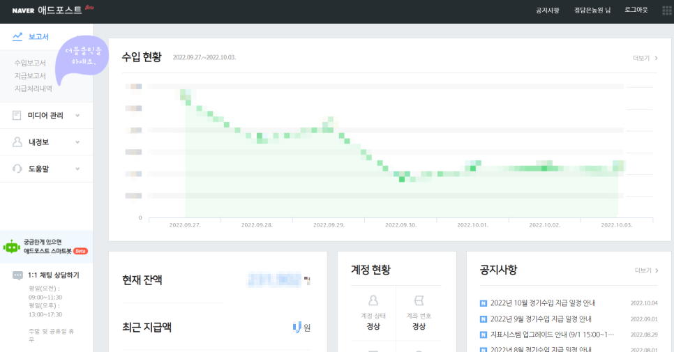 애드포스트에 떠 있는 금액을