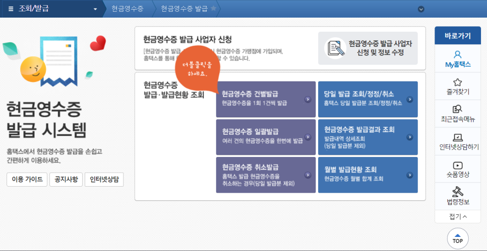 현금영수증 발급 사항을