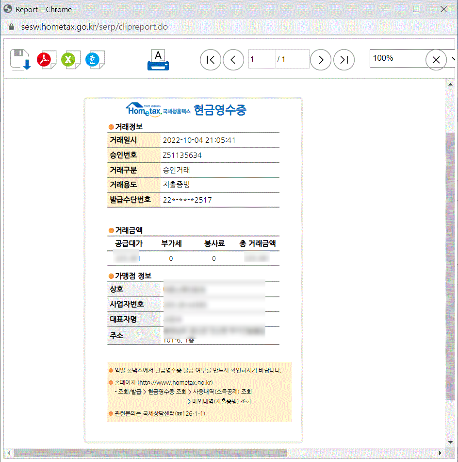 현금영수증 파일이 뜨면
