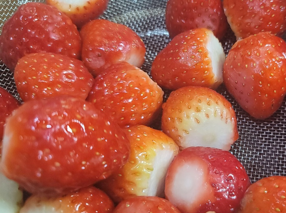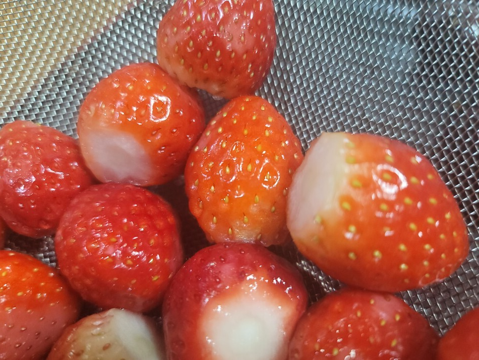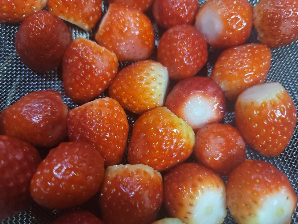 있거나 딸기를 반으로 잘라